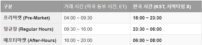 2. 정규장 외에도 거래 가능 (프리마켓 & 애프터마켓)