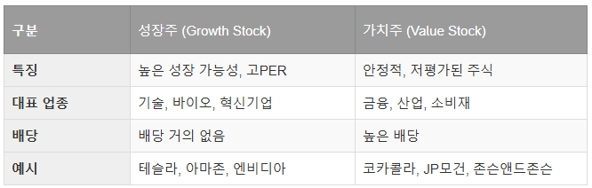 🔹 성장주는 주가 상승 기대감이 크지만, 변동성이 높음